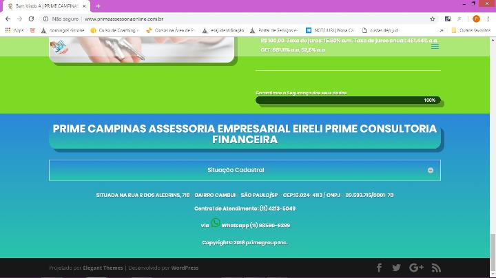 A página www.primeassessoriaonline.com.br, das imagens abaixo,oferece empréstimo para negativados, usando dados da Prime Consultoria Financeira e inclusive dados obtidos junto à JUCESP - Junta comercial do Estado de São Paulo; fazendo alteração nos telefones e emails para que recebam o contato dos clientes e atendendo como Financeira Prime.